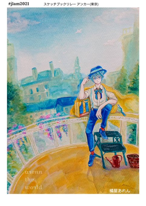 #jlam2021 JAPAN LIVEART MEETING2022 スケッチブックリレー企画 《東京の部 アンカーです》 青空の下で、誰もが自由に旅をして 笑顔で平和に暮らせる日を願って🕊️✨🎨 #liveart #originalartworks #SketchBook #イラスト #acrylicpainting #Liquitex #リキテックス