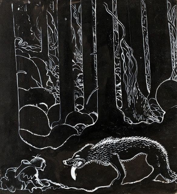 'Among Gnomes and Trolls' by John Bauer, 1907 #johnbauer #johnbauerart #swedishpainter #illustration #trolls #gnomes #fairytale