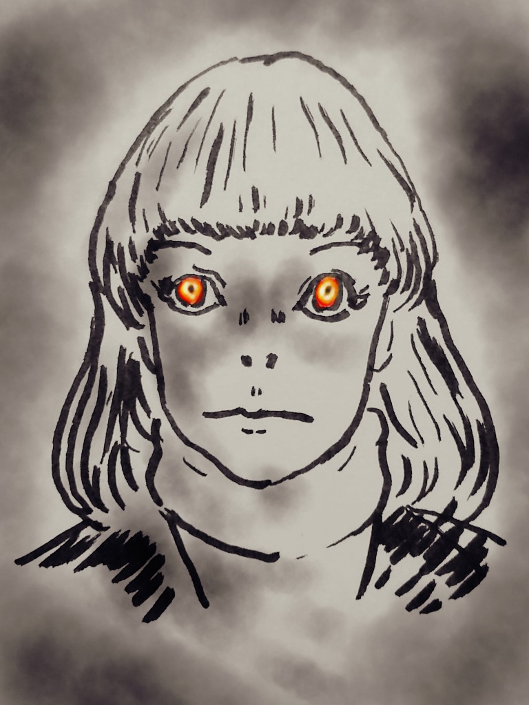 ジョン・カーペンターが1995年にリメイクした『光る眼』では不気味な子どもたちのボスを演じたリンジー・ホーンの存在感が物凄く良かった。小憎らしい感じも含め。 #お絵描き練習中 #イラスト #ジョン・カーペンター #光る眼 #VillageOfTheDamned #JohnCarpenter #HorrorArt