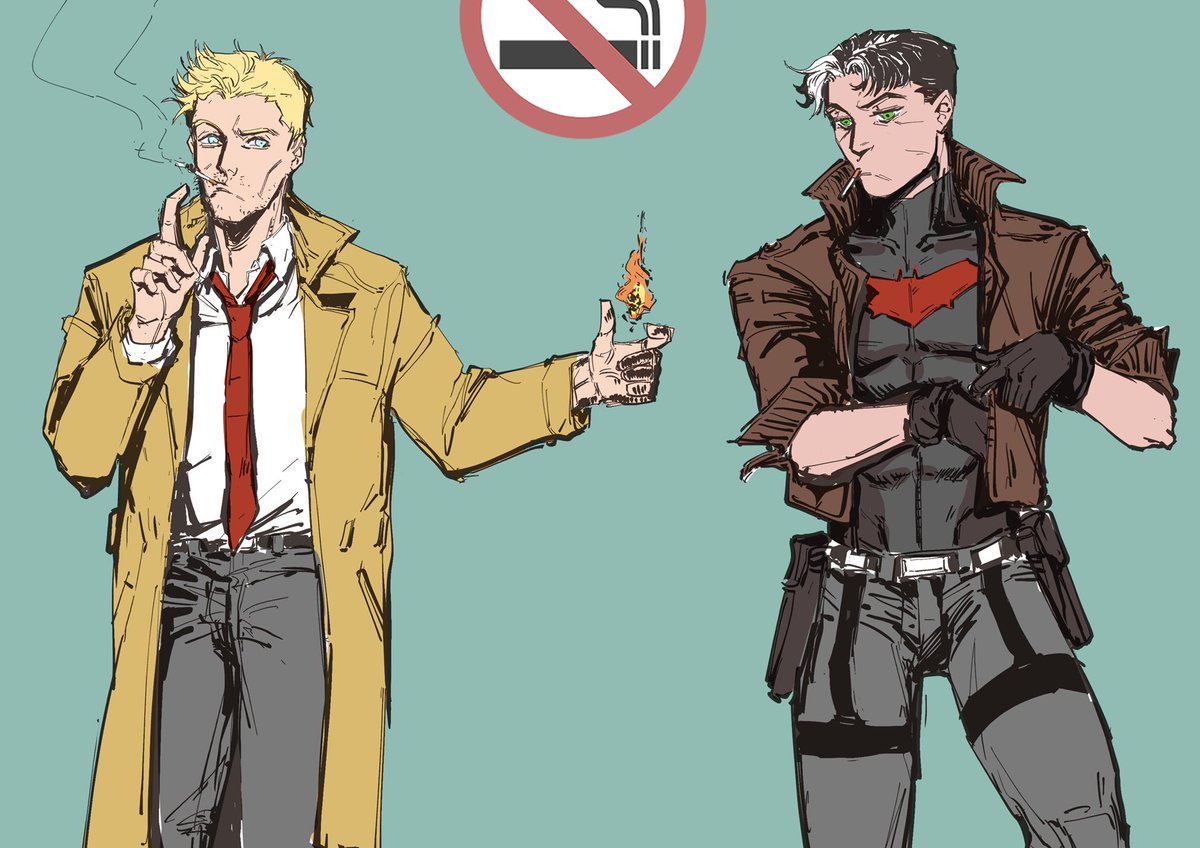 Hey bud, got a light? #Joker and #JohnConstantine having a smoke at #motorcitycomiccon #DCComics #Cosplay