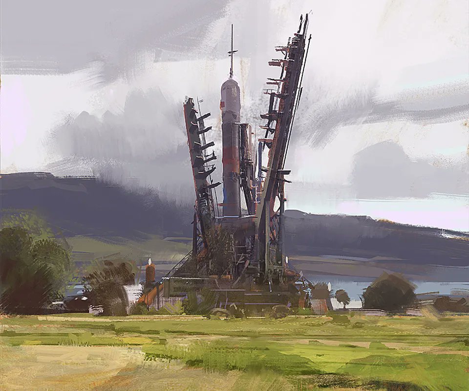 Explore painting methods used for Rocket City during a 60 min. video by J. Park! 🤓 buff.ly/3HEEHAD #digitalart #arttutorial #digitalpainting #howtodraw #fantasyart #artclass #photoshop #art #speedpaint #artist #design #tutorial #johnpark #environmentart #conceptart