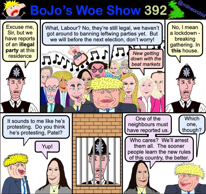 Boris Johnson's government break rules as they see fit. But if you protest about it, you'll soon go to prison. #ToryCriminals #JohnsonTheCorruptPM #JohnsonOut #Sleaze
