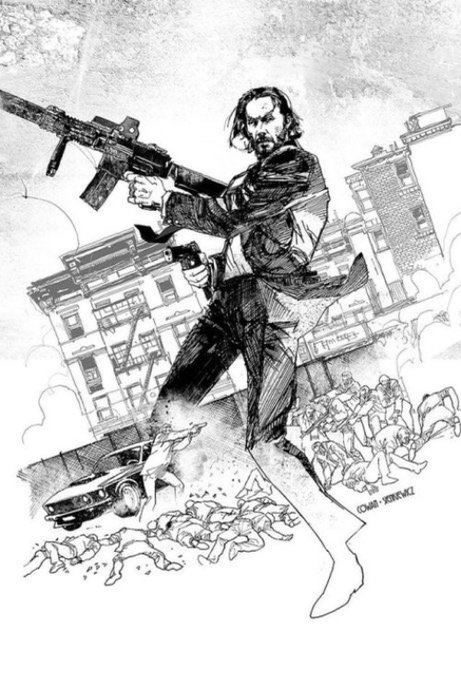 John Wick commission from @GalaxyConRDU gotta do a lot of characters outside comics this time which was fun. Done with inkwash and Copics. #johnwick #commission #galaxyconraleigh