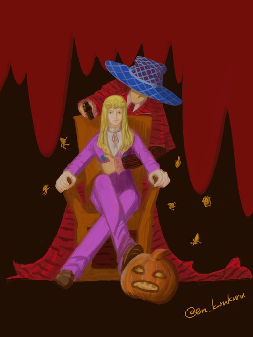 ハロウィン🔫🐞 私が描いた絵… 次ョ女が構図に手を入れ、長女が光を入れた…。 かなわんな… #ジョジョハロウィン2022 #ジョジョハロウィン #JOJOhalloween2022 #JOJOhalloween #jjbafanart #jojofanart