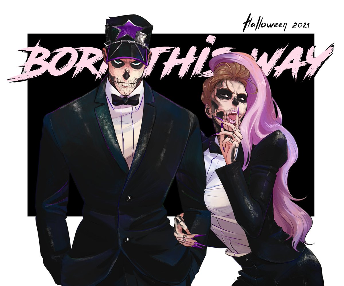 #halloween2021 #JJBA #jjbafanart #jojofanart #JOTARO #jojooc #JojosBizarreAdventure #ジョジョ #ジョジョの奇妙な冒険 "Born this way" anybody? Iconic look of Lady Gaga and Rick Genest by Jotaro Kujo and Eris Armano.