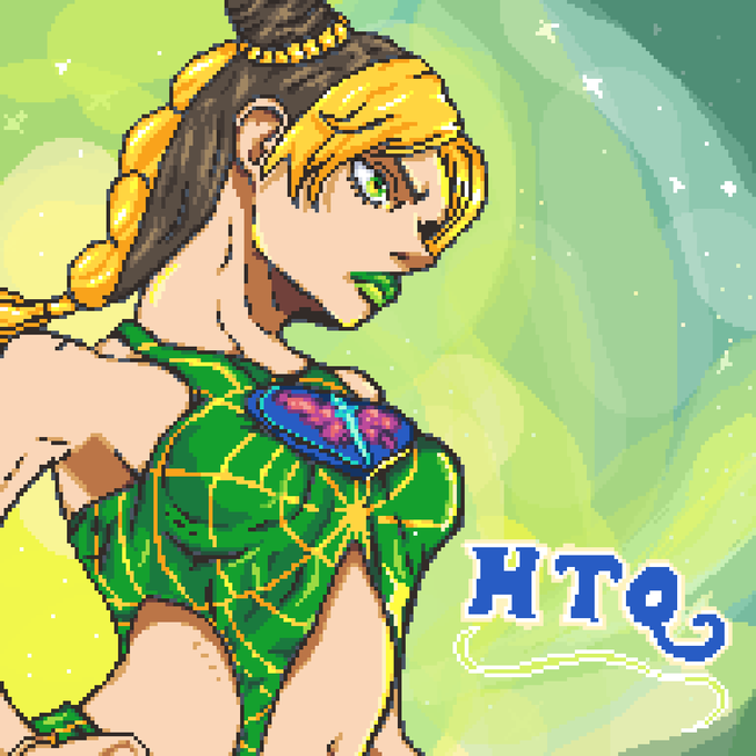 I think I exaggerated in a bizarre way, and got a result that I like, but it's still a #WIP because I'll add Stone Free after watching the anime!💚💛 #pixelart #ドット絵 #JOJOsBizzareAdventure #jojopart6 #StoneOcean #StoneOceanAnime #anime #fanart #animefanart #jojofanart