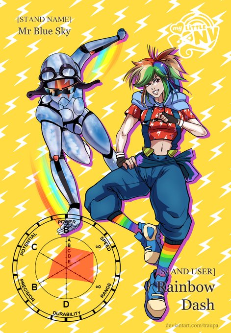 Rainbow Dash finally got a stand! deviantart.com/traupa/art/MLP… #MLPFiM #MLP #jojoreference #fanart #art #animegirl #characterdesign
