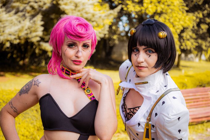 Foto de família nesse domingo. Mamãe Bruno e filha Trish no passeio no parque. #JoJosBizarreAdventure #jojopart5 #jojoreference #cosplay