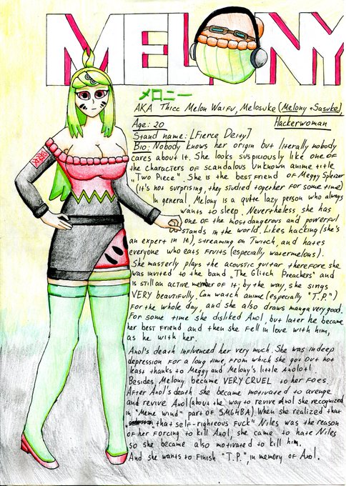 This is a bizarre concept about Melony for my AU SMG4BA, and, in my opinion, this is the best I've ever made @smg4official #イラスト #smg4 #smg4fanart #jojoreference #smg4sbizarreadventure #smg4au #NobodyArtistClub #ArtistOnTwitter #rkgk #smg4ba #smg4melony