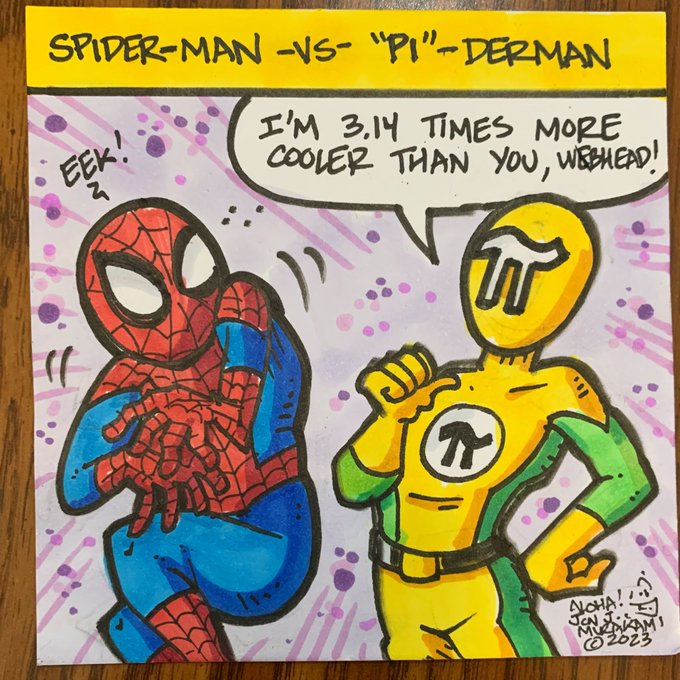 #HAPPY PI DAY (3/14 - get it?) •Normally it would be DC Tuesday for me, but I couldn’t think of a DC character with “Pi” in their name. (Is there one?) Keep smiling all :) #jonjmurakami #copic #copicmarkers #comic #cartoon #spiderman #fanart #pi #piday #piderman #314 #314day