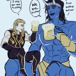 ✨ Smol Mobius ✨ . . Loki just loves picking up their tiny husband 💕 Mobius doesn’t seem to realise that pouting just makes him look even cuter 🤭💕 . . #lokius #Loki #Mobius #lokiseries #jotunloki