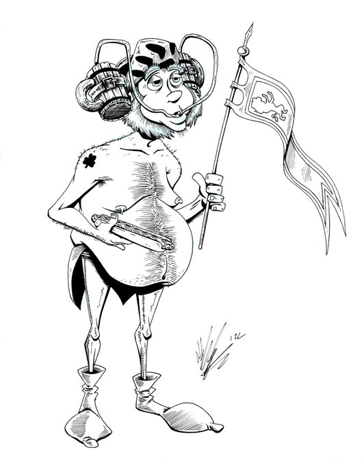 Here’s the medieval jousting fan from last night’s stream. I have colouring plans to sell the gag more. Follow me on twitch at twitch.tv/outhousecartoo… #medieval #jousting #fan #knights #tournament #funny #characterart #characterdesign #art #artist #stream #twitch