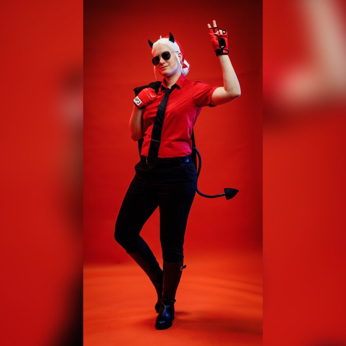"Sure, let's go. The more the merrier, right?" 📸: dmvdberg (Insta) #Helltaker #JusticeHelltaker #HelltakerCosplay