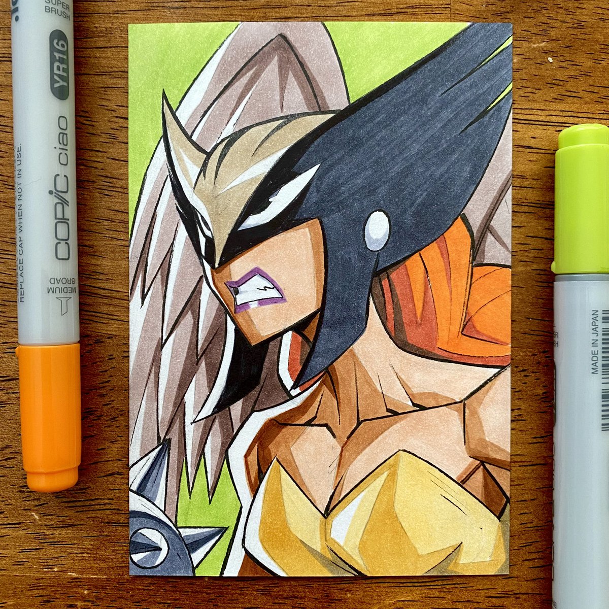 🦅 HAWKGIRL 🦅 8.5x11, ink and copics. My neck hurts but worth it 😮💨 #hawkgirl #dccomics #justiceleague