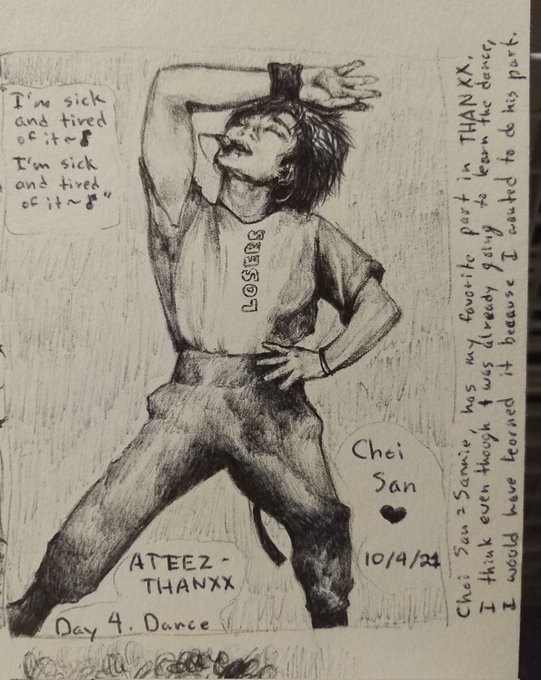 Day 4. Dance I drew San's part in Thanxx. His part really caught my eye the first time I saw both the MV and the choreo. I wanted to do both but I settled for the choreo ver. #inktober #k_inktober2021 #ATEEZfanart #ATEEZ #에이티즈 @ATEEZofficial