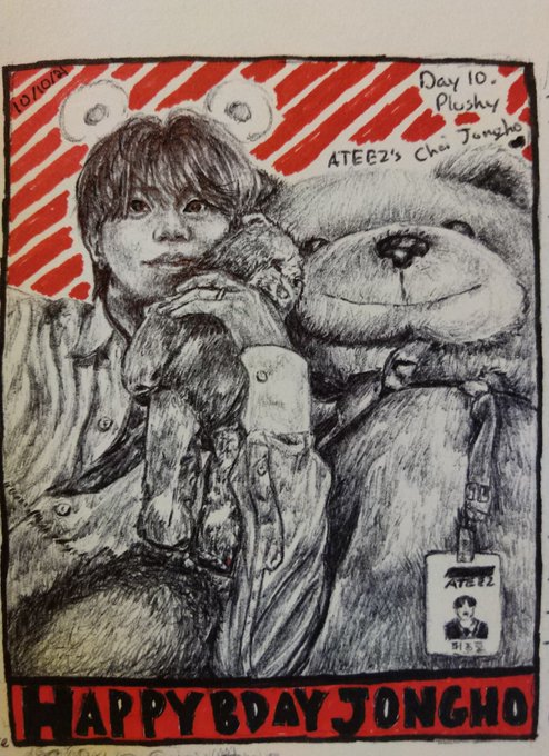 Day 10. Plushy I know I uploaded this one before but this was for Jongho's birthday. This was from a seasons greeting photo (I think). I absolutely adore how he looked with the bear, I couldn't help myself. #inktober #k_inktober2021 #ATEEZfanart #ATEEZ #에이티즈 @ATEEZofficial