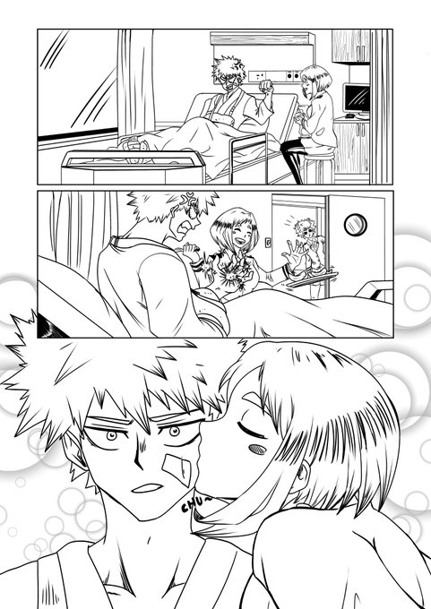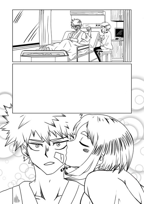 a workout gone wrong, bakugou miscalculates for a new technique and ends up in the hospital, but uraraka keeps him company and takes care of him between lessons😊😊. #kacchako #bakuraka #kacchakofanart #bakurakafanart