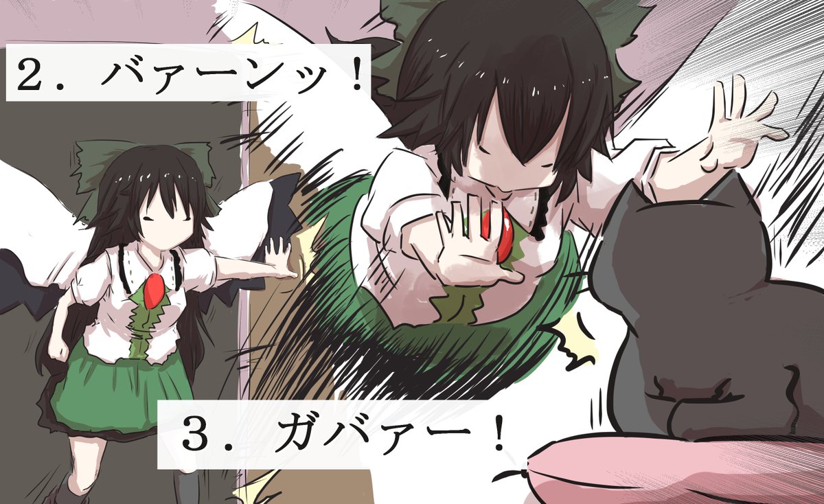 ネコちゃんとあそぼう③【再】 #東方project #火焔猫燐 #霊烏路空 #4コマ #猫 #touhou #kaenbyourin #reiujiutsuho #illustration #アトリエの系譜
