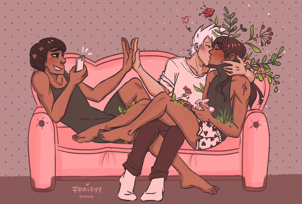“gaming night” they told tenzō… for the polyam-naruto (over on tumblr) june prompts: lazy summer days and gaming/movie night ✨🌱💕 #narutofanart #kakayamagai #ArtistOnTwitter #kakashi #gai #tenzō #yamato #kakayama #kakagai #yamagai
