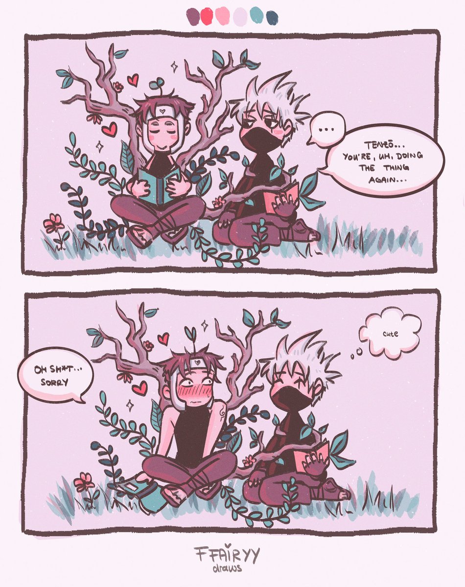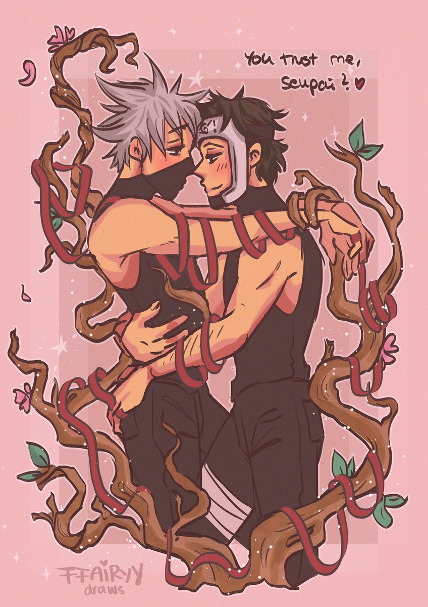 i like to think that when tenzō is feeling content, his surroundings are blooming and his mokuton sometimes subconsciously reaches out for kakashi… 🥺💕🪵 #kakayama #kakaten #naruto #ArtistOnTwitter #narutofanart
