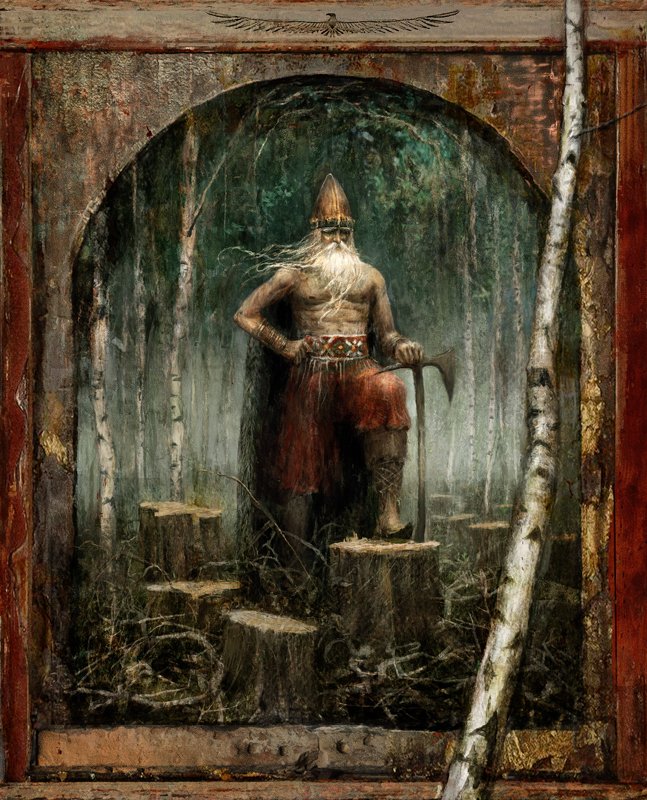The copper giant, and the giant oak tree. Illustration for the #Kalevala, Finland's national epic. Check out the limited edition book here, from Easton Press. eastonpress.com/deluxe-edition…