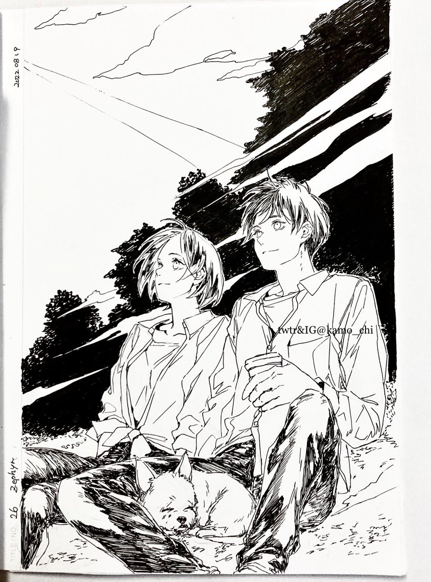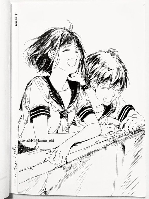 今日生まれたらくがきです。 制作期間なので調子良いです。 #kamo_drawingartist もっと絵の研究したいなぁ。 ペンはsigno 0.28(uniballONE軸使用)とぺんてるさんの慶弔筆ペン{速乾}です。 今回の制作用雑記帳はロールバーン。デビューしたばかりなので使い終わるまではこれです😇