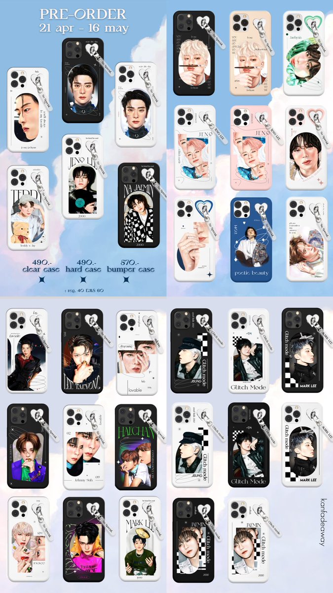 แบบเคสที่เปิดพรีทั้งหมด #kanfadeaway รายละเอียดยิบย่อยจะอยู่ในฟอร์มน้า (ex. แบบไหนมีสีอะไรบ้าง,ประเภทของเคส) clear case : 490.- hard case : 490.- bumper case : 570.- ✨ 30 order (สุ่ม) จากการสั่งซื้อภายใน 1 ชม.แรก มีของแถมพิเศษให้น้าา pre-order : 20 April - 16 May