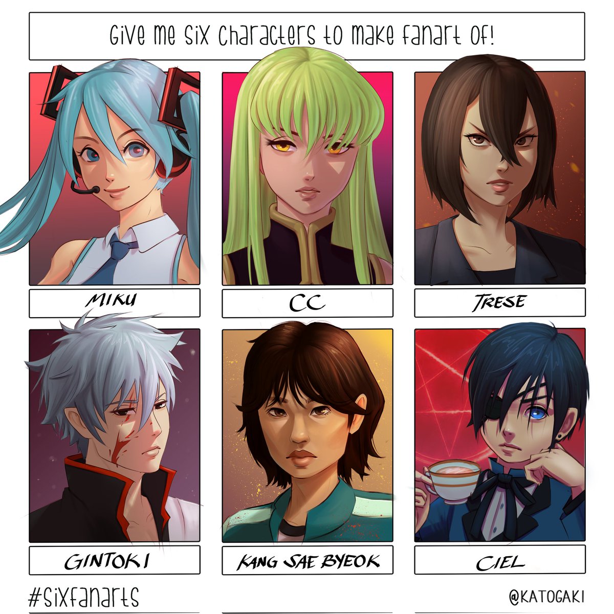 Here's the second batch of the #sixfanarts ... Thanks for waiting ☺️ #sixfanartschallenge #fanart #miku #vocaloid #cc #codegeass #trese #gintama #kangsaebyeok #squidgame #ciel