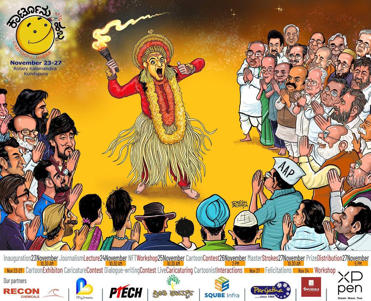 Join us to celebrate the art of editorial cartooning. Cartoonu Habba-2022, from November 23 to 27 at Rotary Kalamandir, Kundapura. A very special guest from the Kantara team will inaugurate the festival. Please be there. #CartoonuHabba #kantara