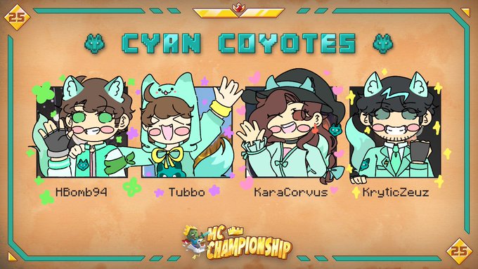 As promised, here’s Cyan Coyotes 25!! #MCChampionship #mccfanart #hbomb94fanart #tubbofanart #kryticzeuzfanart #karacorvusfanart #mcytfanart