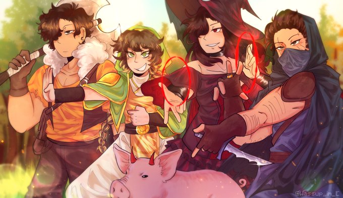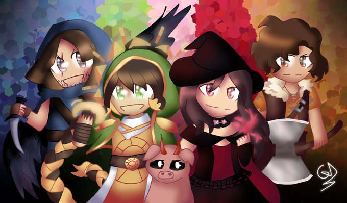 5 brave warriors! Fanart of what is probably a DnD oneshot by @POWCreations! It’s @Mythicalsausage, @olive_sleepy, @apokuna_, @KaraCorvus and @OwengeJuiceTV! ——————————————— #mythicalsausagefanart #olivesleepyfanart #apofanart #karacorvusfanart #owengejuicefanart