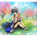 🌼 Frolicking Sia 🌸 This was once a year old sketch of Sia that I had no idea what to do.. until today. I used this sketch to let me test new brushes in CSP. Since it was turning out well, I ended up finishing it. (╹◡╹) #kariavalonart #originalcharacter #ArtistOnTwitter