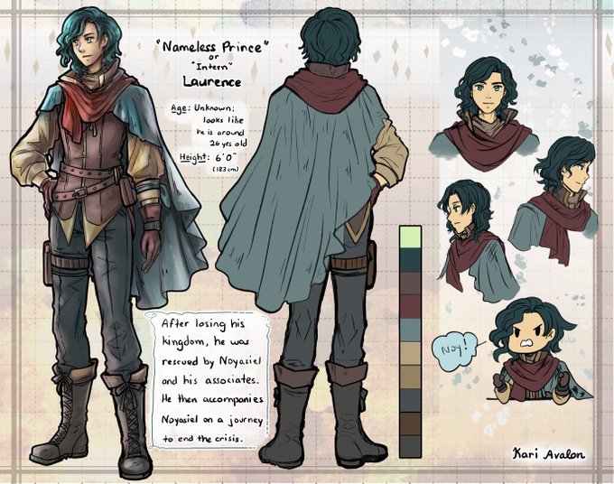 Admittedly I’ve been sitting on this for nearly a year, but I have finally finished Laurence’s character design sheet. ( ・∇・) He will appear in @Alroetsue’s project that she’s been working on for a while. #kariavalonart #characterdesign #ocart