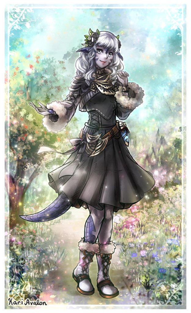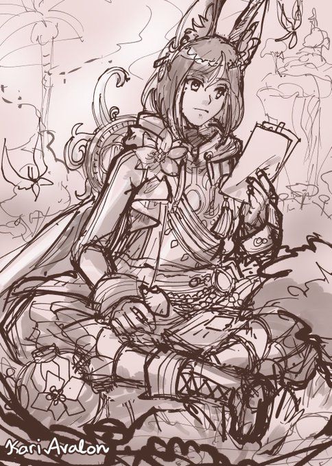 Hello, I was asked to draw K’dyalani Mahsa in this new outfit of hers. Thanks for continuing to work with me, @nyamomask! #kariavalonart #FFXIVART #commission