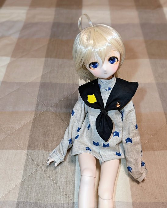 ひゆき様の2wayセーラーシャツが届きましたので、早速ミヤに着てもらいました✨ セーラー可愛い!猫ちゃんアクセがアクセントになって更に可愛いです🥰 #千日紅87 #karinariaっ子 #MDDはいいぞ