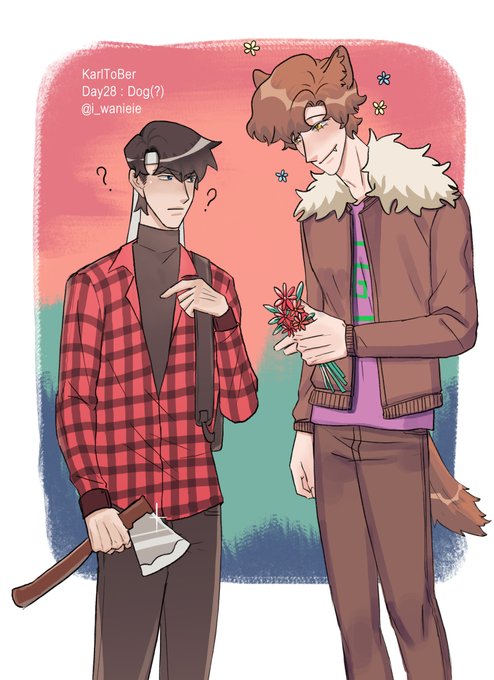 Day28 : Dog(?) The little red riding hood arrived at the destination safely while the wolf(?) was... #karltober #karljacobsfanart