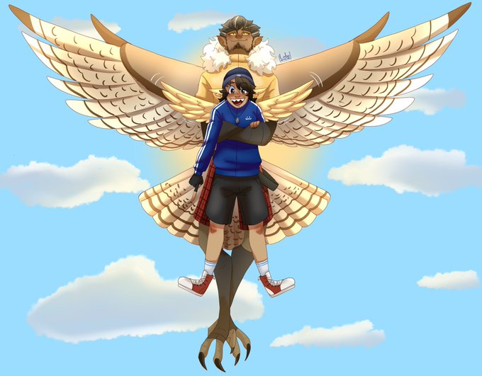 Tengo el HC de que Quackity no puede volar porque sus alas son muy pequeñas, así que Fargan decide llevarle para que sepa que es volar #Karmaland5 #Karmalandfanart #karmalandQuackity #karmalandfargan