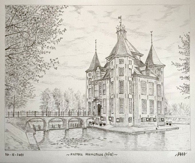 Pencildrawing of Heemstede castle (1645) 🏰 #castle #château #kasteel #HeemstedeCastle #Houten #drawing #pencildrawing #pencilsketch #drawingart #pencil #art #artistontwitter