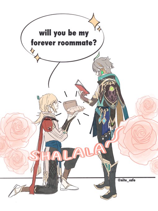 ✨🍫🎁💝🦁🌱 - Late St Valentin day, Althaithaim~ #genshinimpactfanart #Genshinlmpact #kavehtham #kavethamvalentine2023 #Alhaitam #Kaveh