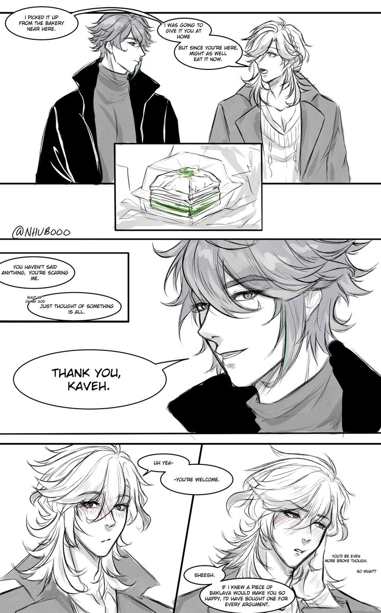 it will be just a sketch cause I won't manage all in time. okay, maybe I'll line but that's it. okaaay maybe b/w cause it looks plain without shadowing. ..damn i want to make accent on a blush. Ends up colouring everything 🤡💪 #kavehtham #haikaveh #kavethamvalentine2023