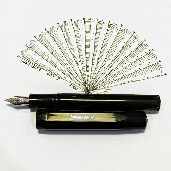 Inktober day 7: fan. . #inktober #inktober2021 #day7 #fan #ink #greenink #kwzgoldgreen #pen #fountainpen #kawecosport instagr.am/p/CUxwUp0oVi6/