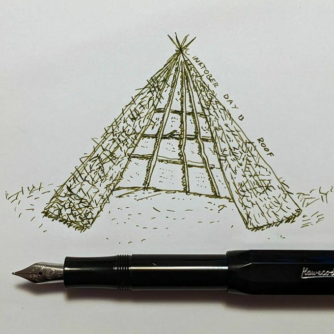 Inktober day 13: roof. . #inktober #inktober2019 #day13 #roof #ink #greenink #kwzgoldgreen #pen #fountainpen #kawecosport #drawing #teepee #shelter