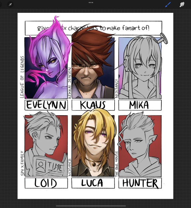More WIPs,, anyone still doing the six fanarts thing anymore?? #evelynn #Melatikaart #loidforger #kekkaisensen #TheOwlHouse