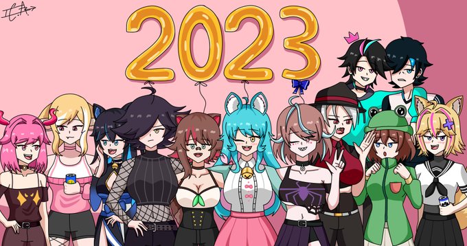 Empecé solo dibujando a @Emikukis y termine creando un fondo de pantalla personal jajja tiene muchos easter eggs como a @kendomurft y @KarmaVT_ , si alguien tiene mas ideas de que Vtubers poner lo are para el siguiente dibujo que haga #Emikukisart , #KendoArt , #karmavtart