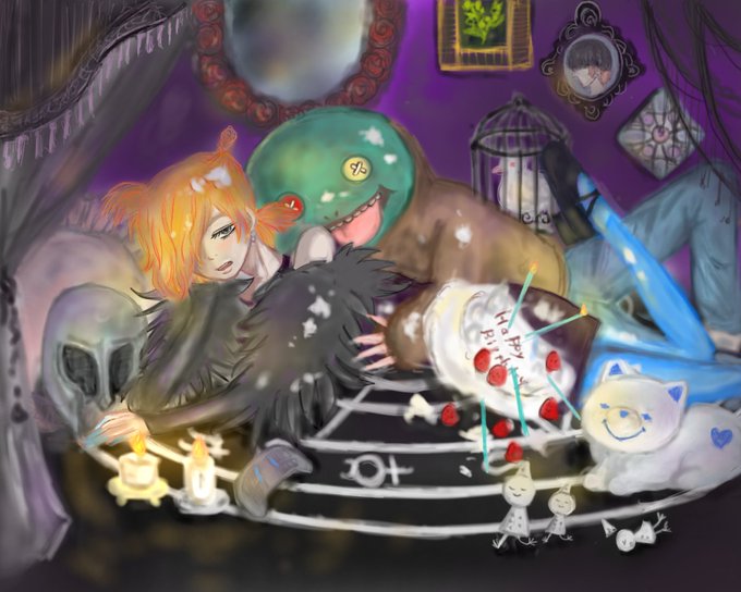 こちら間に合わなかったけど🤣 3枚目 お誕生日お祝イラスト💕 米津さん共に、、共にっ♥️ 楽しくいきましょうね💕 嬉しいーーっ🤣✨ #米津玄師 #kenshiyonezu #米津玄師誕生祭2023 #POPSONG #ニギチャン #ポプソンちゃん #イラスト #ファンアート