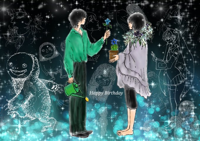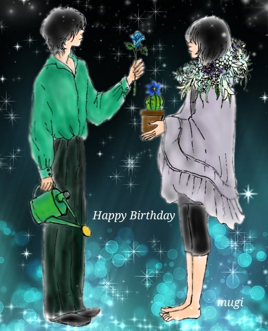 米津さん、32回目のお誕生日おめでとうございます🌹🥂🍾 2人を拡大したバージョンです。 連投させてくださいね。 #お祝い絵其ノ二 #米津玄師誕生祭2023 #米津玄師 #KenshiYonezu #Happybirthday #イラスト #アイビスペイント
