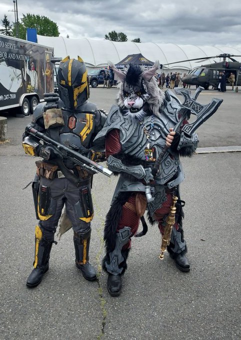 Finally got to wear the #Khajiit cosplay at @GermanComicCon. Also finally wore the amazing Khajiit mask made by @feralworks ! 📷 by @TheobaldJulia who also made sure I stay alive through the experience 😂😘 #ComicCon #cosplay #theelderscrolls #GermanComicCon