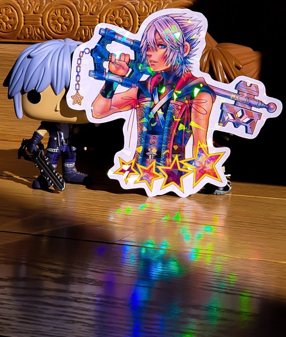 "SOLACE" The new holographic print.⚜️ Inspired by that scene from Dark Road ⭐️Pin set and holo print, will be available on Friday 20 (next week). I hope you like the new items and stay tuned!! #kingdomhearts #khdr #xehanort #eraqus #KH #fanart twitter.com/_princesselemm…