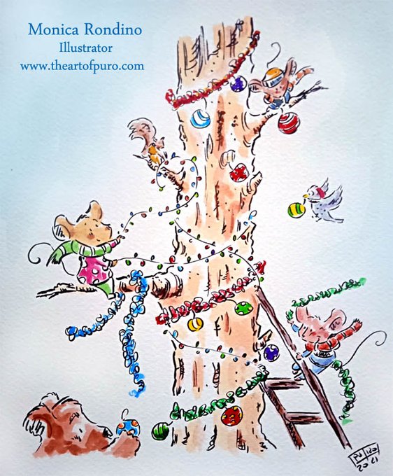 A new #KidLitArtPostcard day with "Decorate" #artchallenge #Holidraw21 on IG I'm a #kidlit illustrator ,I work on children's books,covers and comics with my partner Andrea. instagram.com/theartofpuro #ChildrensBooks #illustrations #kidliart