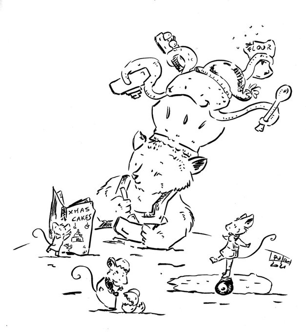 Are you ready for #Christmas? #Illustration done for #artchallenge #Holidraw21 on IG "Bake" prompt . Didn't menage to color it..but here you are the inks :) #ChildrensBooks #kidliart #inkdrawing #kidlit